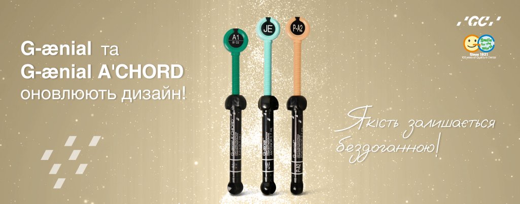 поступово в обіг входять матеріали G-AENIAL та G-AENIAL ACHORD в оновленому дизайні шприців.
