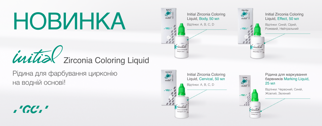 Зустрічайте на ринку України новий продукт від компанії GC – Initial IQ Zirconia Coloring Liquid!